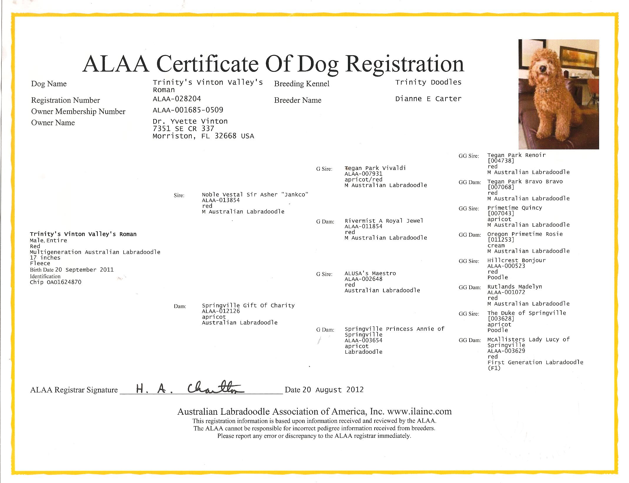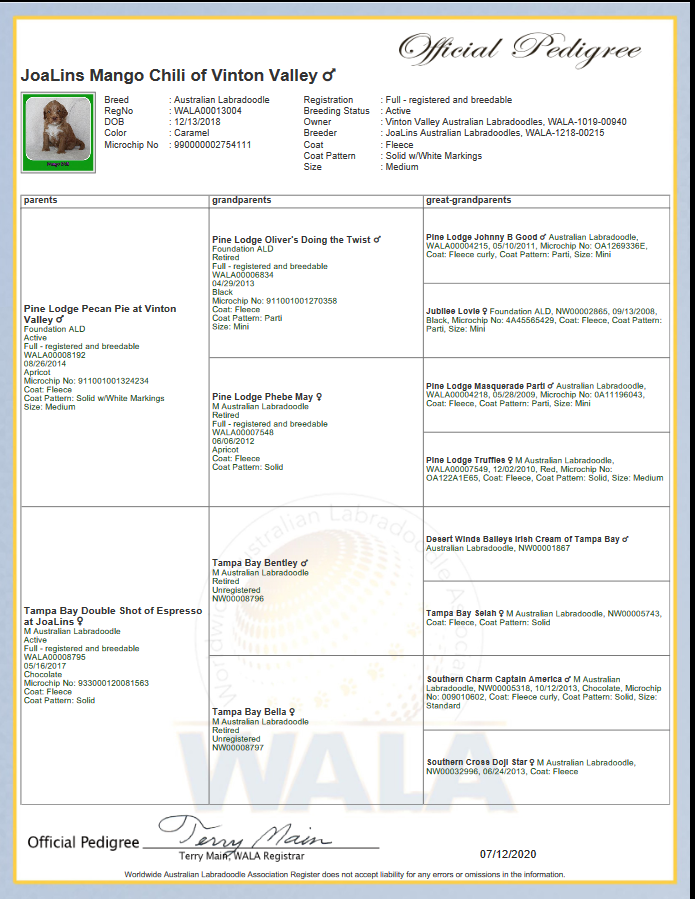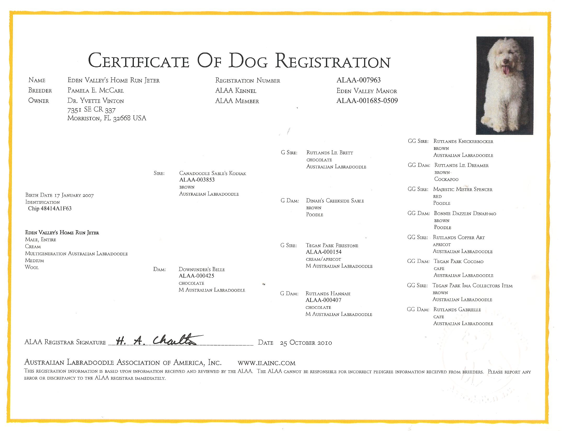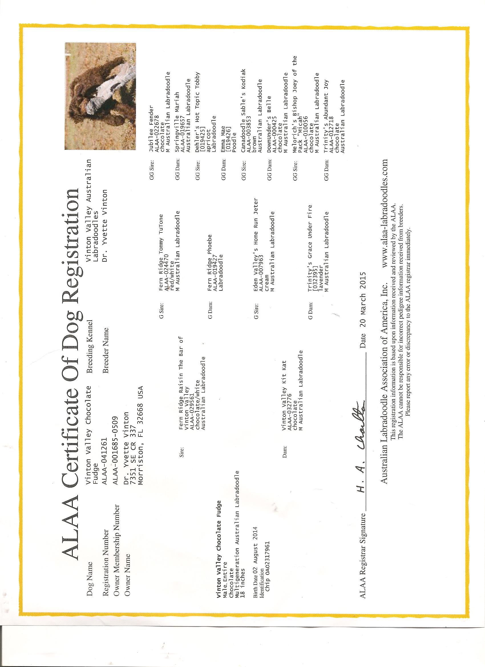 Pedigree Certificate